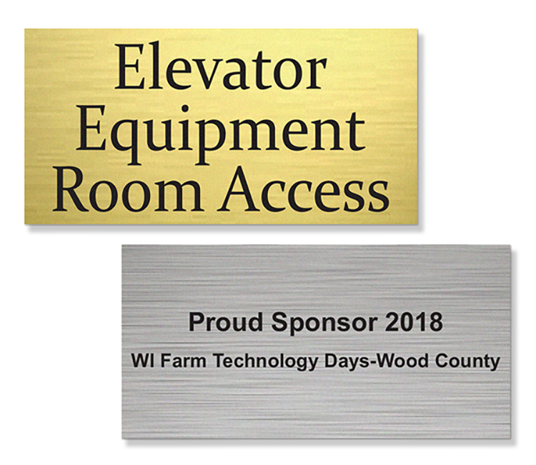 Direct, frighten, inform, confuse, or mandate by using these UV printed or engraved (your choice- same price) plastic signs. These signs are made from 1/16” thick 2 ply metallic or non metallic plastic and include your choice UV digital imprint or engraving and include square corners.