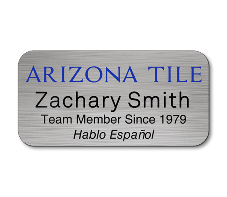 If you’re looking for a sizzling UV printed and engraved name badge on a 2-ply plastic, your search is over. If you’re looking for your shih tzu Schubert, we can’t help you. We start with your choice of a 2-ply plastic, UV print your logo, then engrave a line of personalization on it. These badges come with our standard pin back attachment. Additional lines of personalization and attachments, including magnet backs, are available at additional cost. The Vault online release program is available, allowing you to release personalized badges as few as 1 at a time.